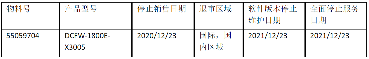 北京贝斯特全球奢华数码云科信息技术有限公司正式通知您, 以上DCFW-1800E-X3005下一代防火墙(55059704)将于20201223号停止接收新的订单(具体日期见上表),不再供货。给您带来的不便,敬请原谅。