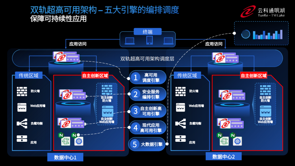 为实现双轨超高可用架构信创区和非信创区的跨域协同,实现信创区域和非信创区域的平滑过渡,贝斯特全球奢华顺利获得五大引擎实现多层次的应用可持续性。